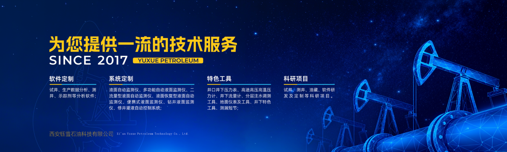 西安钰雪石油科技有限公司所属行业为专业技术服务业,是国家认证的3A级认证企业, 陕西省优秀企业。服务领域涵盖了压裂效果评价、地质勘探综合研究、地震资料处理与解释、测井资料综合解释、套管井地层参数评价、生产测井与试井解释、生产数据分析、储层评价等领域,并与多个高校科研机构形成了由教授、高工和博士组成的专家研究队伍。目前本公司主打多套核心软件(YXWTIS试井解释软件、YXPDA生产数据分析软件平台、设备智能控制软件、手机app软件)+多套核心硬件系统(多功能液面自动监测仪、井口压力表、高频高温高压压力计)+压裂效果评价(高频压裂效果评价、示踪剂压裂效果评价、声呐压裂效果评价、密闭井筒测试),研究功能化分子结构智能编辑与合成、高压CO₂纳米气泡制备、CO₂高效驱油与封存双效化学体系研发、CO₂地质矿化封存与同步制氢、耐超高温、高盐CO₂刺激响应型生物质自愈合凝胶、高效仿生碳酸酐酶制备及促进CO₂水合机制、超深层减阻耐高温超分子冻胶压裂液的合成及应用,实现了从硬件研发、现场数据测试、自研软件解释一体化服务。